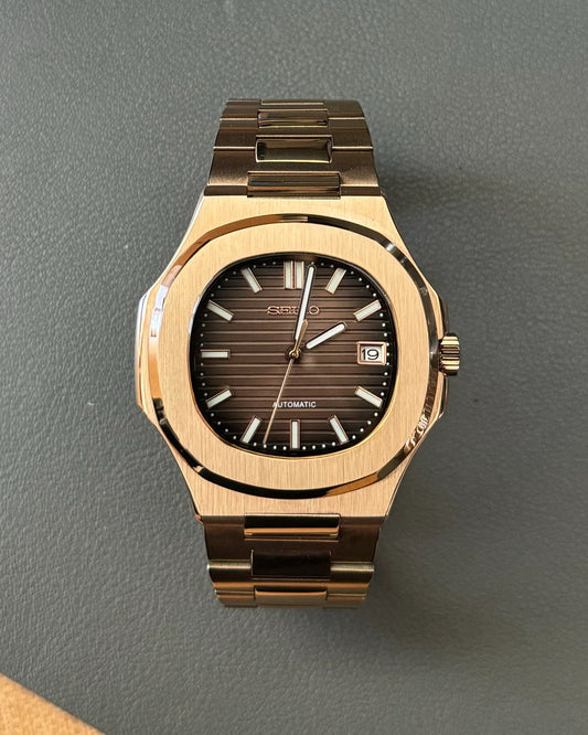 Seikmod Naut Earth NH35 I braunes Zifferblatt mit roségoldenem Armband