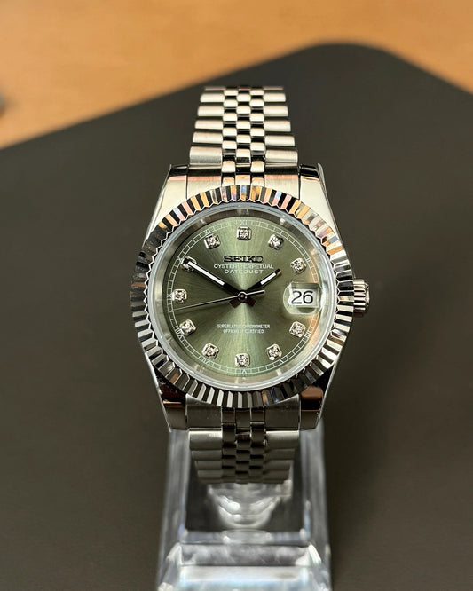 Seikmod Stainless Basil NH35 I olivfarbenes Zifferblatt mit Jubilee-Armband