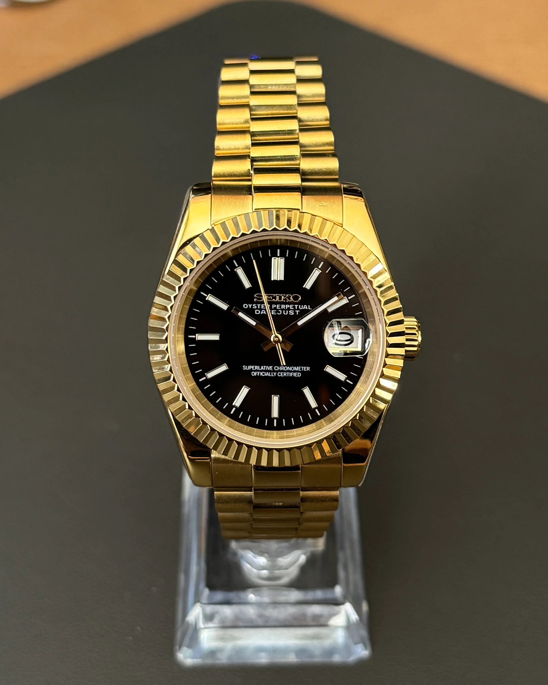 Seikmod Aurum NH35 I schwarzes Zifferblatt mit Presidential-Armband